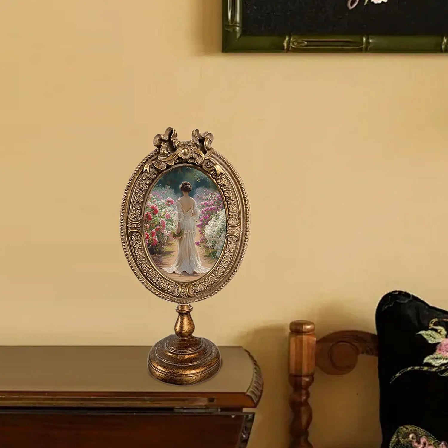 Golden Vintage Oval Photo Frame – Elegant Tabletop Décor & Gift Idea